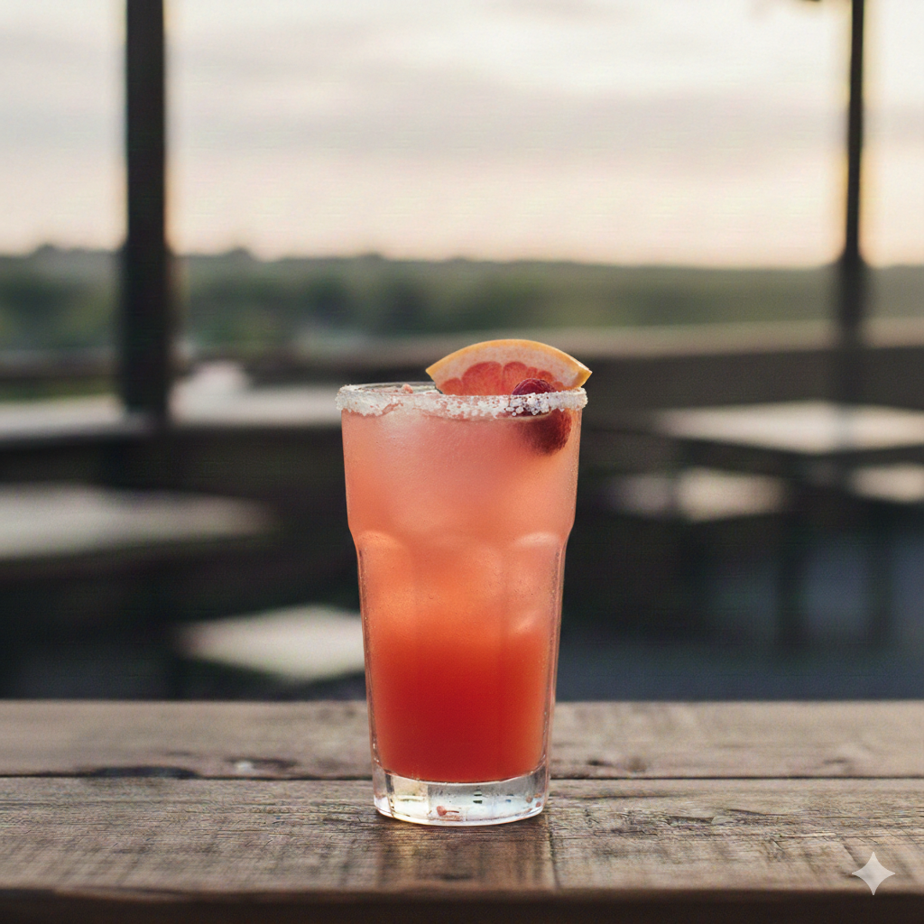 Recipe: 2oz Tequila, 4 oz Grapefruit Soda, 1/2oz Lime Juice, Pinch of Salt, Garnish with Grapfruit or Lime Slice (Splash of orange juice optional)
